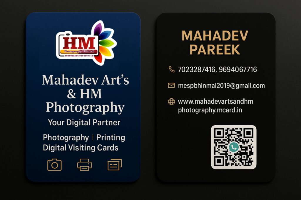 Mahadev Arts & HM Photography рдореЗрдВ рд╣рдо рдЖрдкрдХреА рдпрд╛рджреЛрдВ рдХреЛ рдЦреВрдмрд╕реВрд░рдд рддрд╕реНрд╡реАрд░реЛрдВ рдФрд░ рд╢рд╛рдирджрд╛рд░ рдкреНрд░рд┐рдВрдЯрд┐рдВрдЧ рдбрд┐рдЬрд╝рд╛рдЗрдиреЛрдВ рдХреЗ рдЬрд╝рд░рд┐рдП рдЬреАрд╡рдВрдд рдмрдирд╛рддреЗ рд╣реИрдВред рд╣рдорд╛рд░рд╛ рдЙрджреНрджреЗрд╢реНрдп рд╣рд░ рдкреНрд░реЛрдЬреЗрдХреНрдЯ рдХреЛ рдХреНрд░рд┐рдПрдЯрд┐рд╡ рдЯрдЪ рдФрд░ рдкреНрд░реЛрдлреЗрд╢рдирд▓ рдХреНрд╡рд╛рд▓рд┐рдЯреА рдХреЗ рд╕рд╛рде рдкреВрд░рд╛ рдХрд░рдирд╛ рд╣реИред ЁЯУ╕ Photography Services рд╣рдорд╛рд░реА рдЯреАрдо рд╣рд░ рдореЛрдореЗрдВрдЯ рдХреЛ рдХреИрдорд░реЗ рдореЗрдВ рдХреИрдж рдХрд░рдиреЗ рдореЗрдВ рдорд╛рд╣рд┐рд░ рд╣реИ: ЁЯТН Wedding & Pre-Wedding Photography ЁЯОЙ Event & Birthday Shoots ЁЯС╢ Baby & Maternity Photoshoots ЁЯОе Cinematic Reels & Videos ЁЯУ╕ Fashion & Portfolio Shoots "рд╣рд░ рдХреНрд▓рд┐рдХ рдореЗрдВ рдПрдХ рдПрд╣рд╕рд╛рд╕" тАФ рдпрд╣реА рд╣рдорд╛рд░рд╛ рд╡рд╛рджрд╛ рд╣реИред ЁЯЦия╕П Printing Services рд╣рдо рд╕рднреА рдкреНрд░рдХрд╛рд░ рдХреА рдХрд╕реНрдЯрдо рдкреНрд░рд┐рдВрдЯрд┐рдВрдЧ рд╕реЗрд╡рд╛рдПрдВ рдкреНрд░рджрд╛рди рдХрд░рддреЗ рд╣реИрдВ, рдЬрд┐рд╕рдореЗрдВ рд╢рд╛рдорд┐рд▓ рд╣реИрдВ: ЁЯкк Digital Visiting Cards & Business Cards ЁЯУД Wedding Cards & Invitation Designs ЁЯз╛ Bill Books, Letterheads & Envelopes ЁЯзв T-Shirts, Mugs, Keychains Printing ЁЯУК Flex Banners, Posters & Pamphlets ЁЯУж Packaging Stickers & Labels ЁЯФЦ Custom Gift Items & Photo Frames Creativity, Quality, and Timely Delivery тАФ рдпрд╣реА рд╣рдорд╛рд░реА рдкрд╣рдЪрд╛рди рд╣реИ